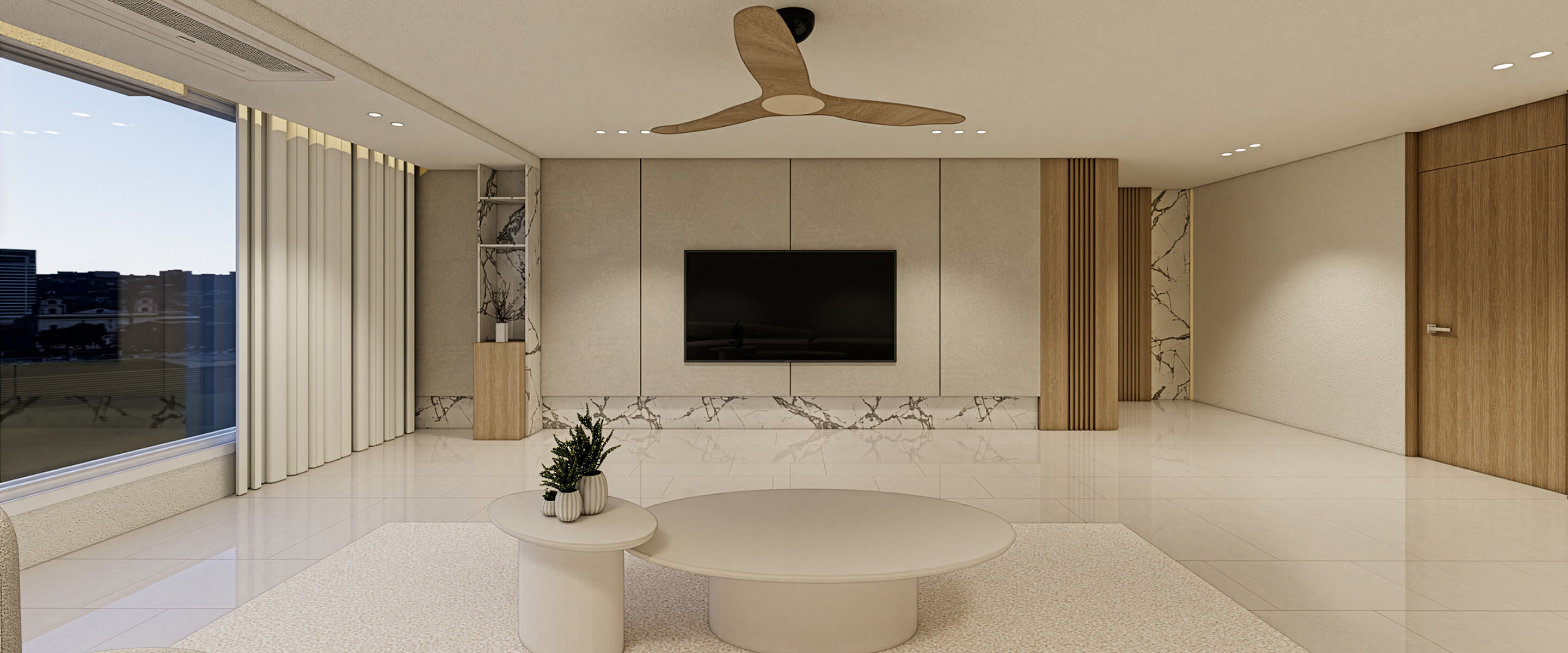 거실은 TV월과 스톤 포인트로 중심을