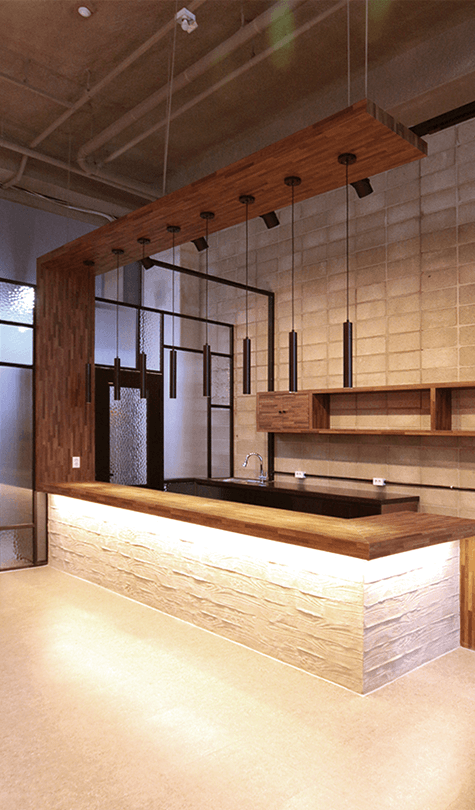 거칠어 보이지만 들어오면 차분해지는 대구 사무실 디자인입니다.