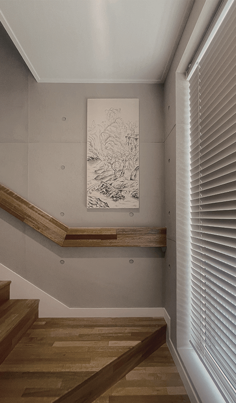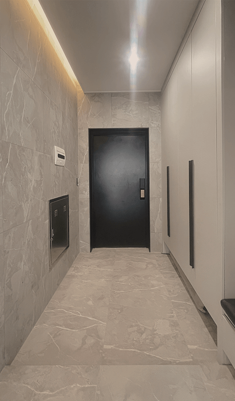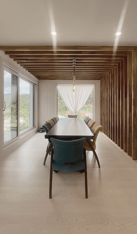 우드 마감과 간접조명으로 부드럽게 이어지게 했습니다.