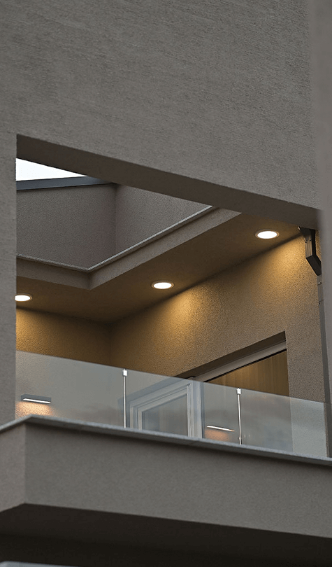 낮에는 자연광이 벽을 타고 번지고 밤에는 외곽 조명이